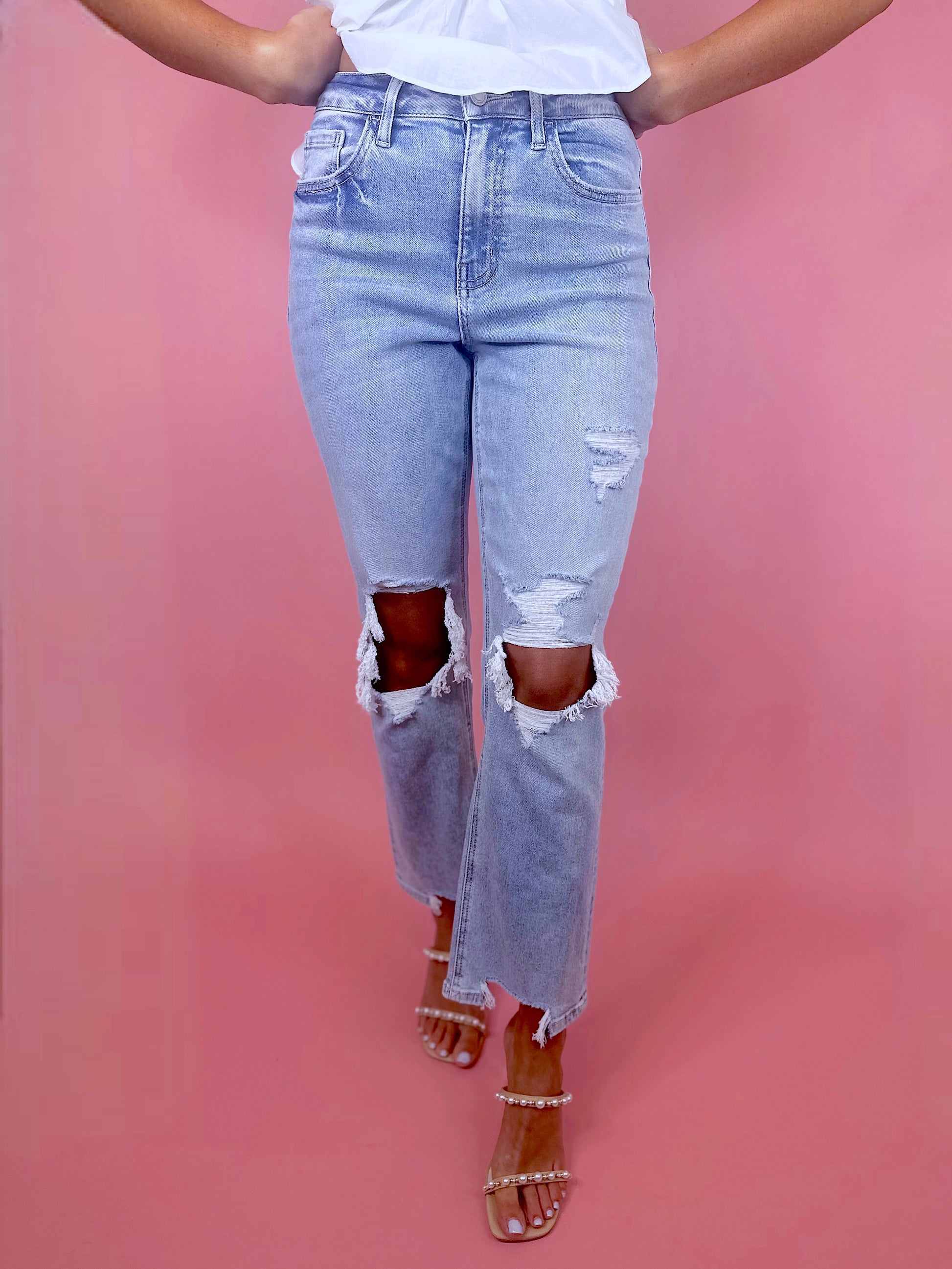 - Experience the ultimate comfort in our Best Moment High Rise Jeans. Crafted with comfort stretch denim, these super high rise jeans provide a flattering fit while the distressed detailing adds a touch of edge. Perfectly cropped with a 90's straight leg, these jeans are a must-have for any wardrobe.