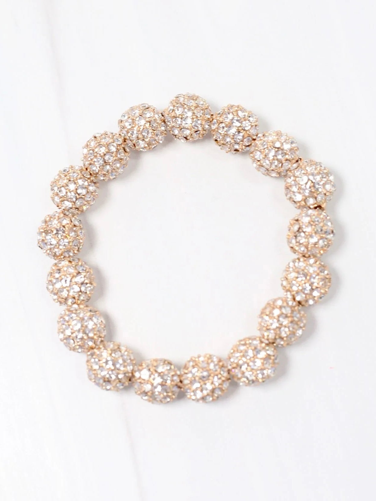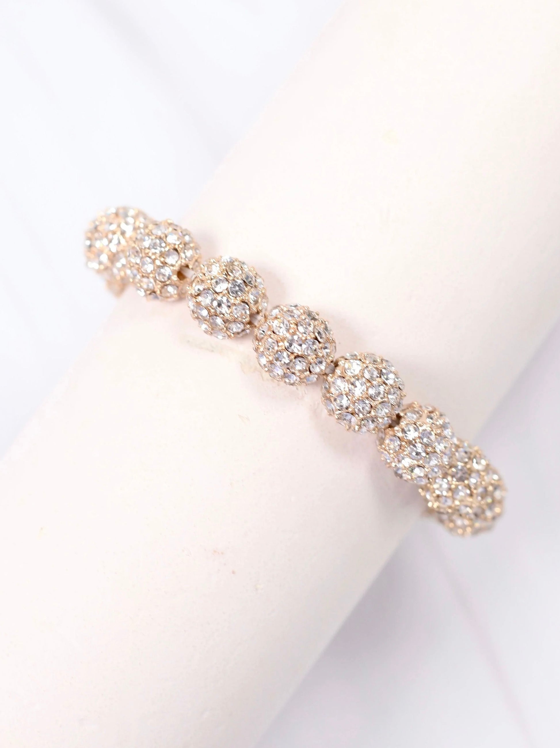 This gorgeous bracelet is lined with CZ covered ball accents. It has such an elegant look and will elevate any outfit! Stretches to fit most wrists.