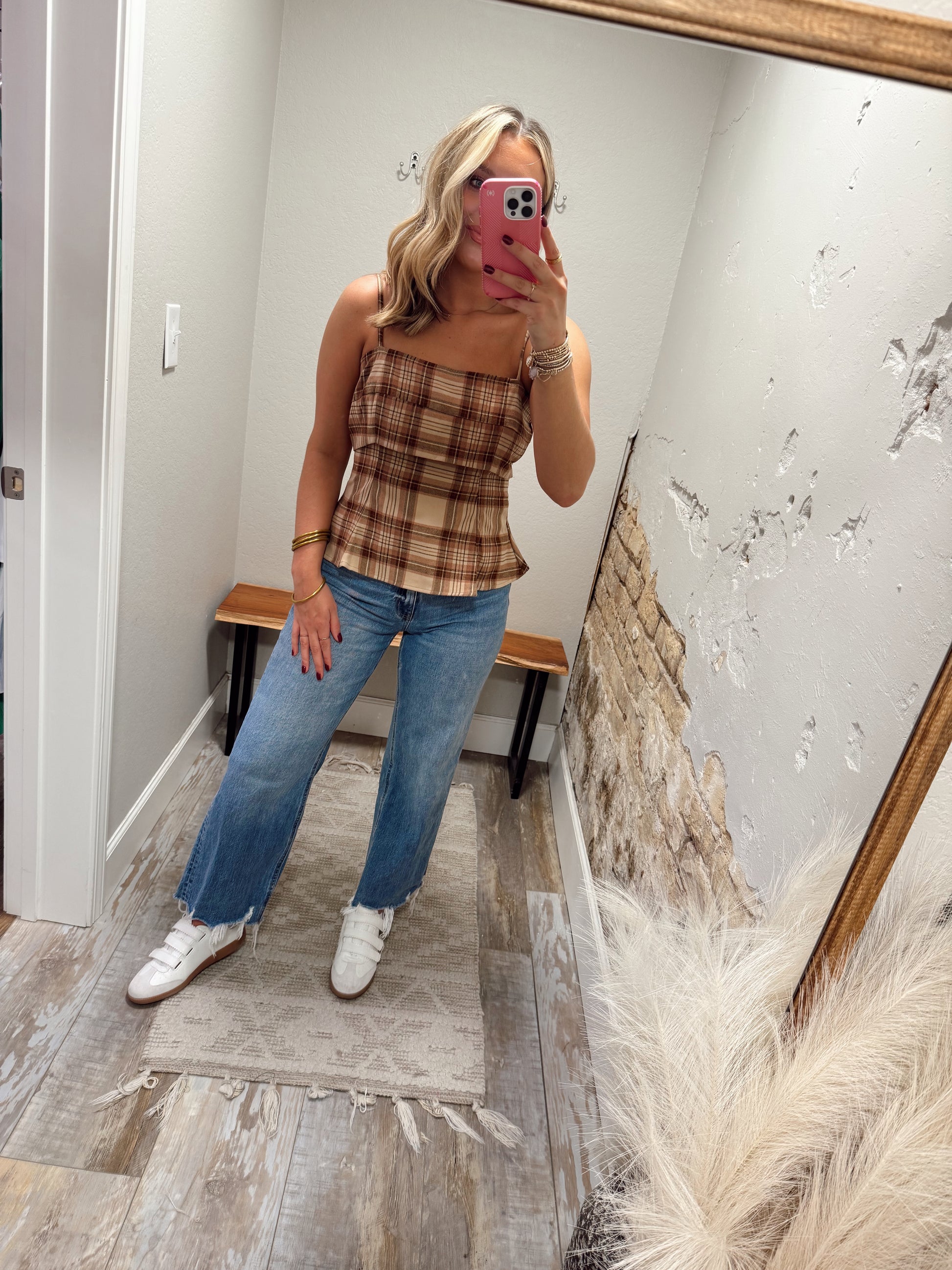 - The Play Your Part Top is thoughtfully designed with a flattering plaid fit-and-flare shape and layered patch panels for added style. Its adjustable straps and back zipper closure provide a personalized, comfortable fit, making it easy to wear all day. The sleeveless design offers great versatility, allowing you to feel confident and supported whether paired with your favorite layers or worn on its own.