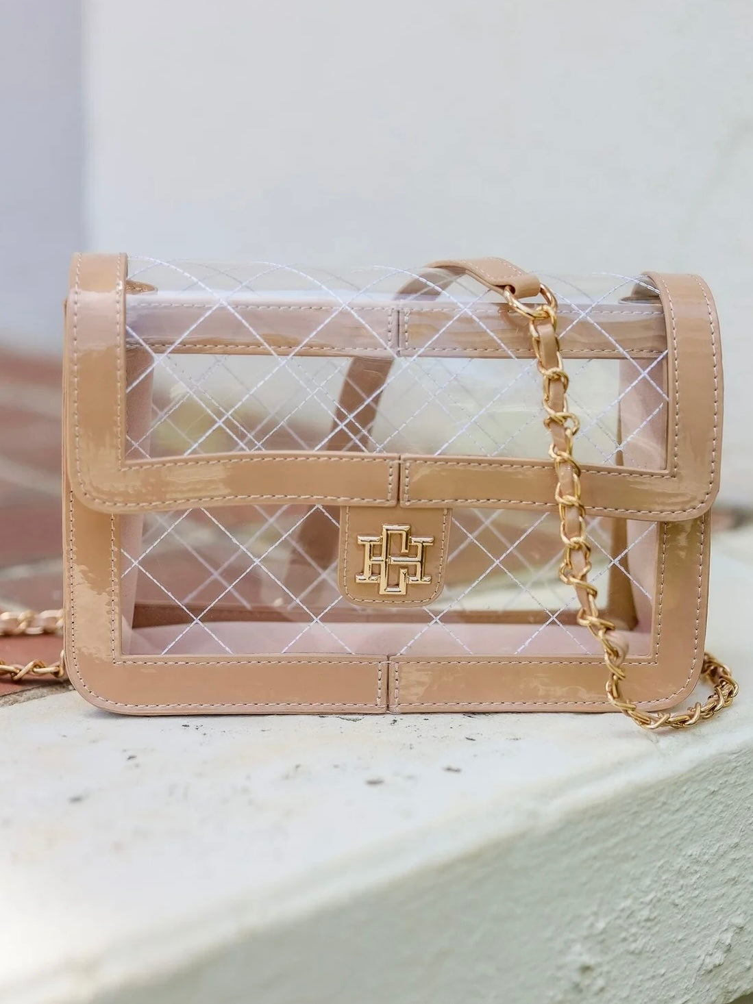 Quinn Quilted Clear Bag - Nude Patent