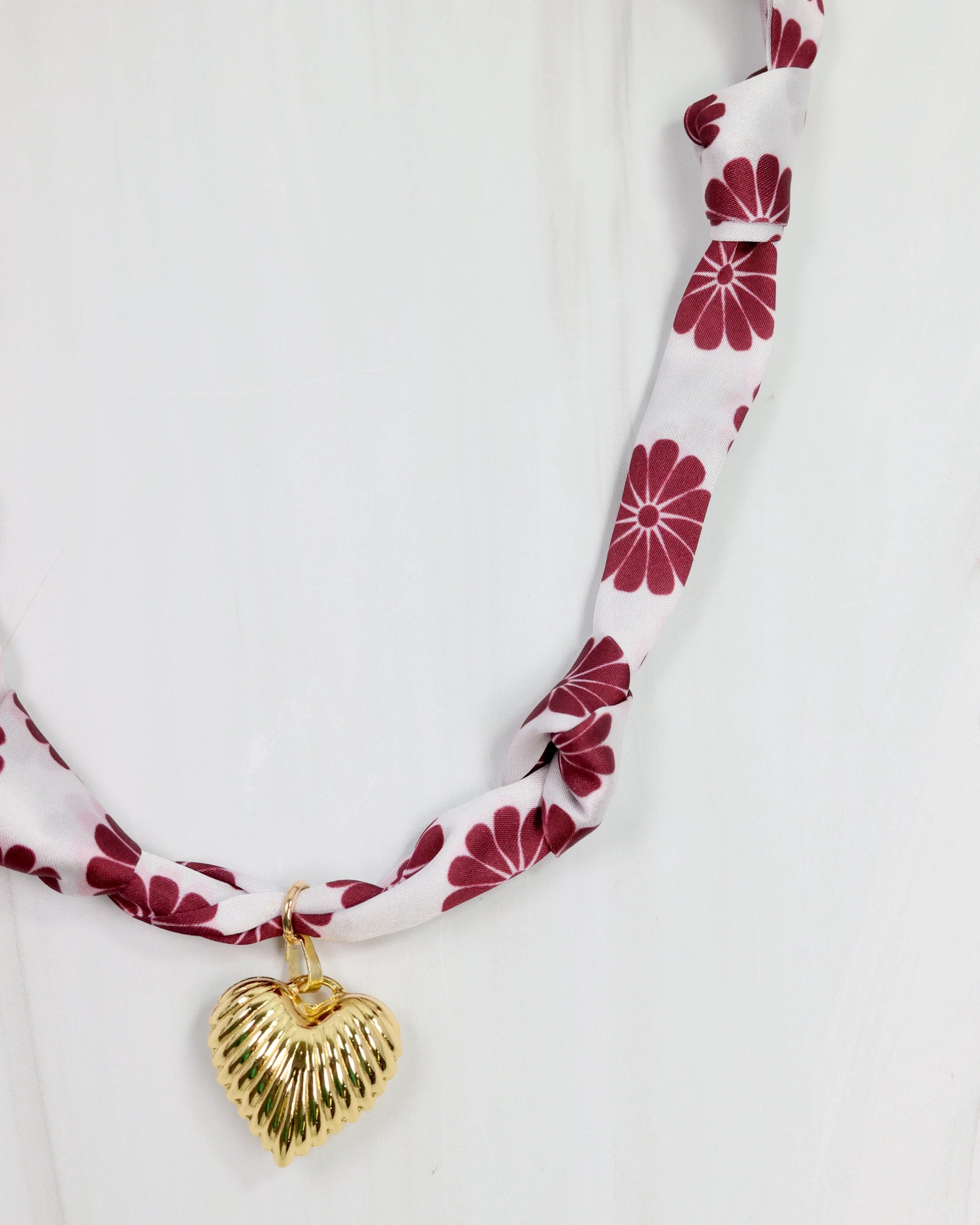Elevate your look with our Scarf Charm Necklace featuring a classic black and white print. This satin-feel scarf is accented by a ribbed puff heart charm pendant, adding a playful yet chic touch. Designed with two stylish knots and a tie-back closure, it offers adjustable comfort and a perfect fit for any outfit.