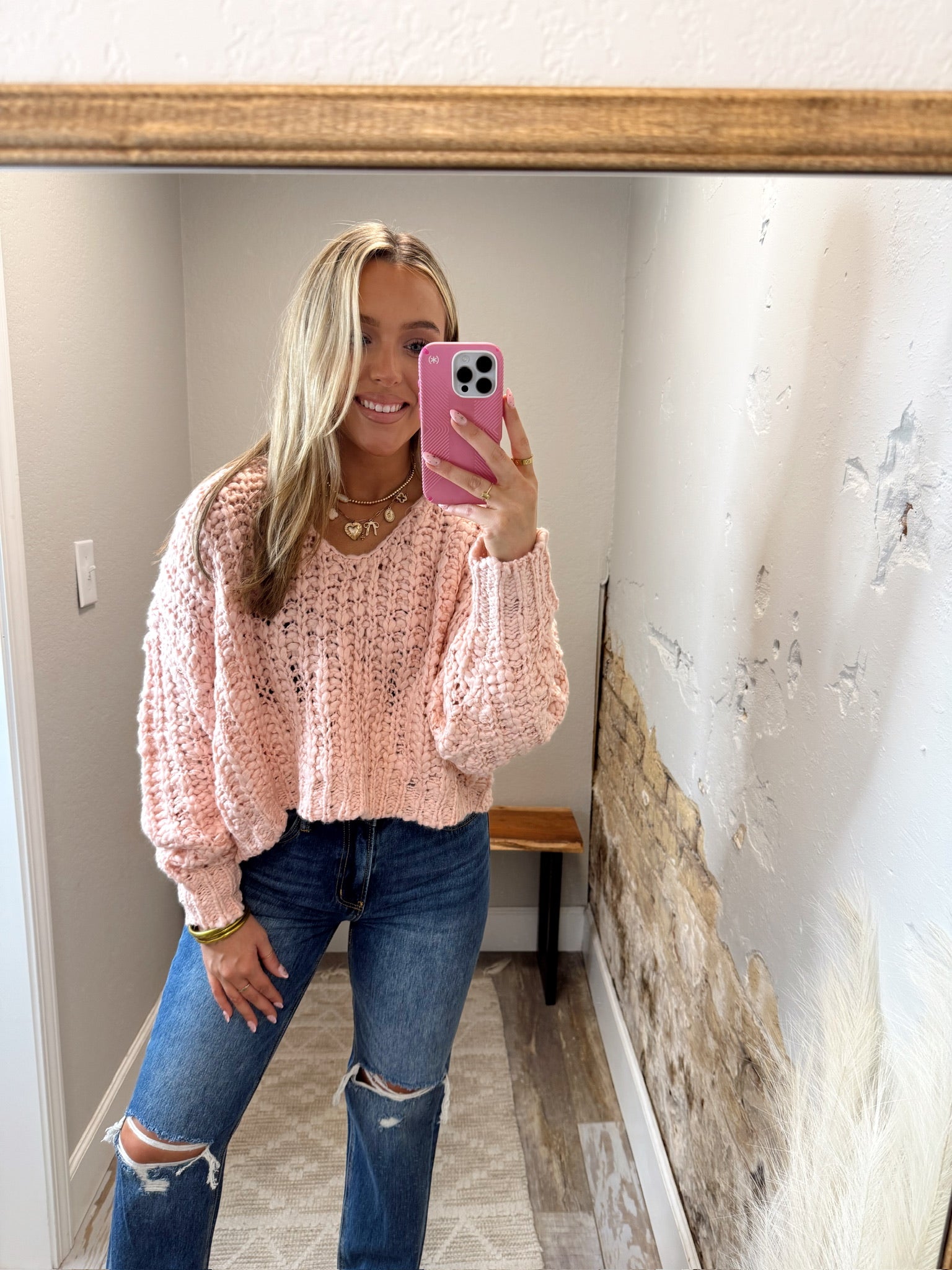 - The Soft Season Sweater features a cozy popcorn yarn texture and a flattering V-neck cropped design. This sweater provides gentle warmth and a comfortable fit, making it perfect for layering during cooler days. Its soft fabric and relaxed style support your comfort while adding a stylish touch to your wardrobe.